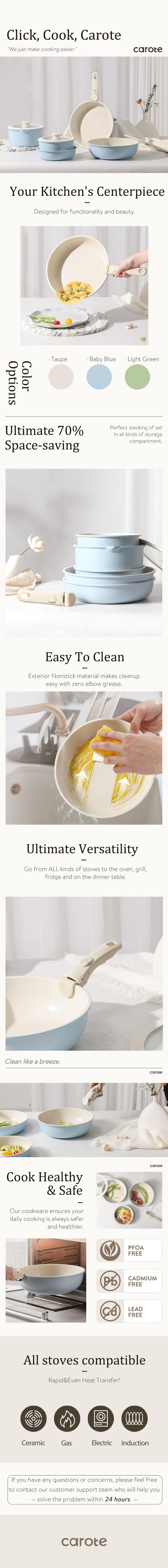 - You won't Compromise on Quality: Balancedconvenience-rich features, raipd&even heat transfer, andnonstick performance as the same as other Carotecookware sets.