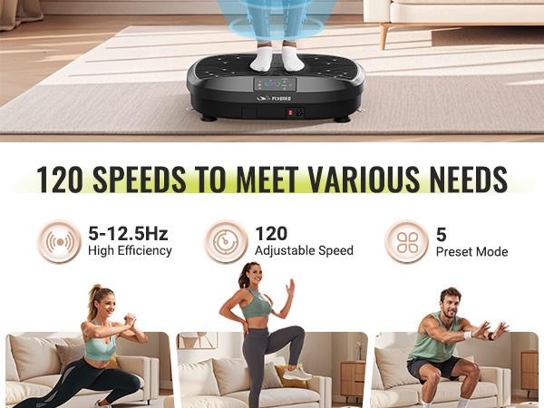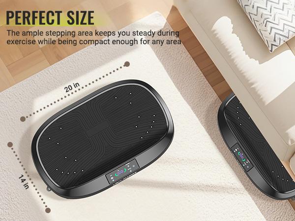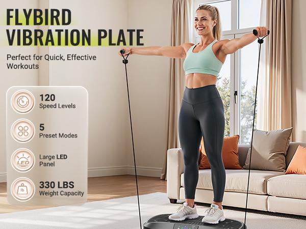 【Efficiency Meets Convenience】 Enjoy the utmostconvenience and flexibility of home workouts withFLYBIRD vibration plate.120 intensity options. Just 10minutes a day can enhance workouts, aidin rehabilitation. Even sedentary people and older adultswith limited mobility can easily engage in exercise whilewatching TV or listening to music at home.【Bring the SPA Home】Recommended bychiropractors! You can choose soothing speed vibrationpromoting metabolism and elimination of lactic acidwhich can effectively relieve chronic pain in the backjoints, waist and legs. After workout, this exercisemachine relaxes muscles without causing additionaldiscomfort. Perfect for use under desks between workfor a rejuvenating experience.【A Breeze to Start】Operate the vibration plate intwo ways: conveniently with the included remote controlor through our LED Touch Screen, offering an intuitiveand interactive user interface. The manual includesvarious workouts and positions for your reference. With 5automatic vibration modes, it automatically adjustsintensity and shuts off after a set time.【Workout Anytime,Anywhere】lts compact size fitsperfectly in small spaces , and it's easy to carry, storeand use. The four suction cups keep the workoutmachine firmly in place, minimizing vibration noise evenat the highest intensity levels. The impact-resistant ABSshell ensures motor longevity andprotection.【Fitness, Recovery and Massage】Embrace thebenefits of a treadmill, foot massage, and massage chairall in one FLYBlRD vibration plate. We are committed tosurpassing our customer expectations in both quality andservice.Order today and enjoy a lifetime cover on theproduct and parts. -