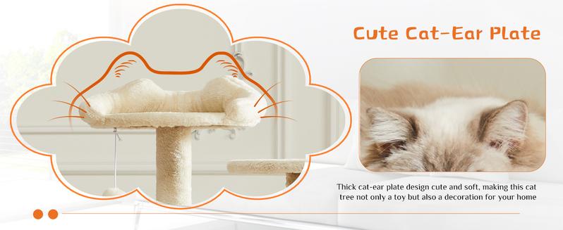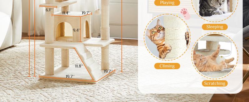 This Cat Tree is an idealplayground for your feline friend! With three climbableplatforms, your kitten can unleash their inner adventurerand explore to their heart's content. And when it's timeto rest, the two cozy cat condos provide a private, safeand warm space for your cat to curl up and relax.【Cat's Entertainment Hub】