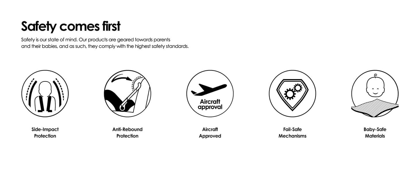 - SAFE - Includes 3-layer side impact protection. anti-rebound bar crash technology & a 5-point safety harness. It's TUV and FAA aircraft approved for travel. made with baby-safe materials & the canopy is water repellant with UPF 50+ sun protection.