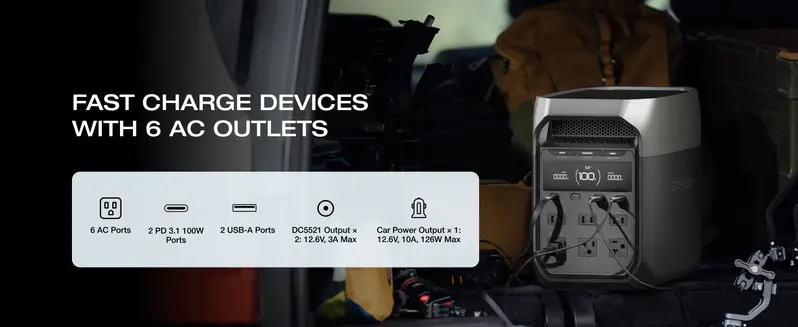 Power 13 Appliances Simultaneously. With abundantinterfaces, it powers 13 appliances at once, perfect foremergencies.X-Boost supports resistive appliances withpower demands over 2600W continuouslyWhat's in the Box. EcoFlow DELTA 3 portable powerstation, AC charging cable, Car charging cable, DC5521to DC5525 cable,User manual, and an exclusive 5-yearcustomer service